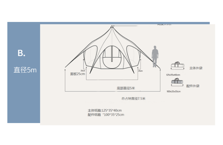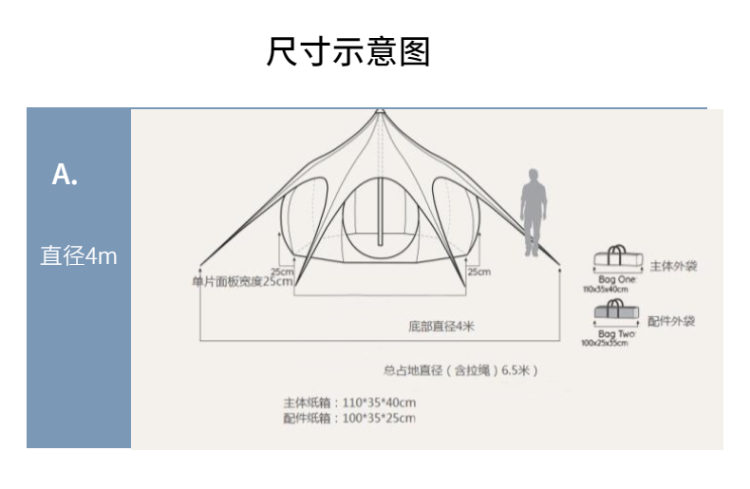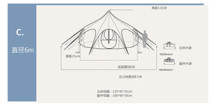 | 帳篷直徑(M) | 4m | 5m | 6m |