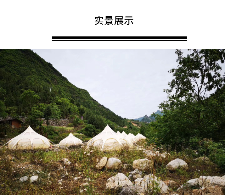| 產(chǎn)品用途 | 家庭露營、車隊自駕、休閑旅行、景區(qū)增宿、營地野奢帳篷酒店、景觀園林、山莊民宿、特色餐廳等... |